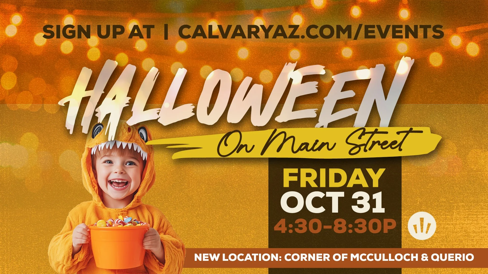 Each Halloween, Calvary partners with the community and serves children in our city by setting up game booths and handing out candy for Halloween. We will continue that tradition this year and serve our community on Main Street. We will have game booths, bounce houses, free water, and TONS of candy.