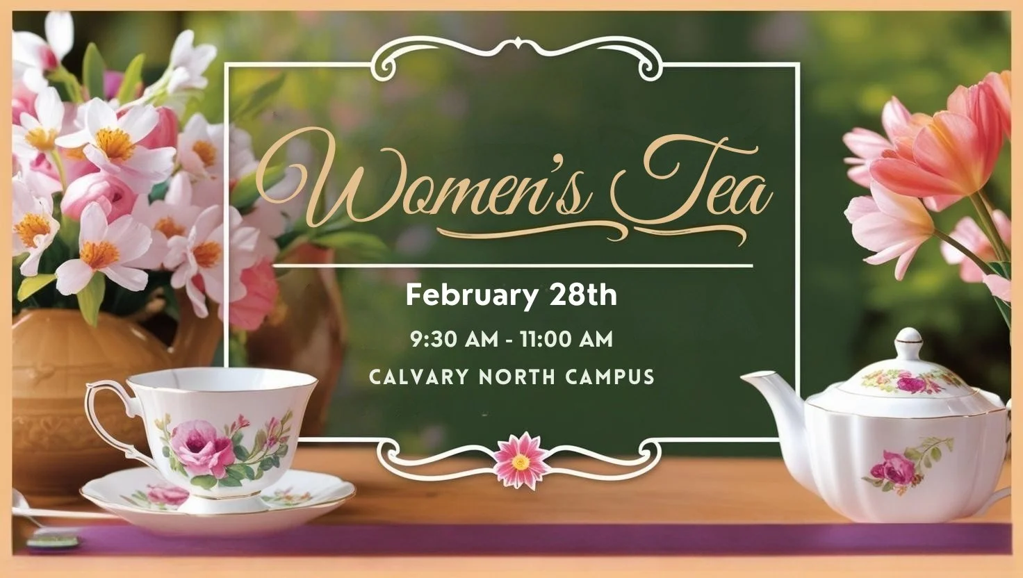 Ladies, you’re invited! Join us for a delightful morning of tea, food, fellowship, and encouragement at our Church-Wide Women’s Tea on Saturday, February 28th, from 9:30 AM to 11:00 AM at Calvary’s North Campus.